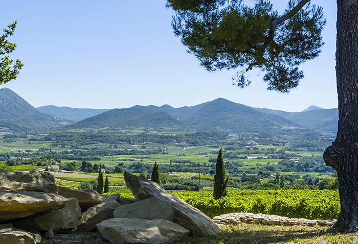 Los viñedos de Cellier des Dauphins se encuentran en un área de clima mediterráneo del sur del Ródano donde disfrutan de largas horas de sol, ideales para la maduración de la Syrah, la Garnacha, la Viognier y otras uvas locales.