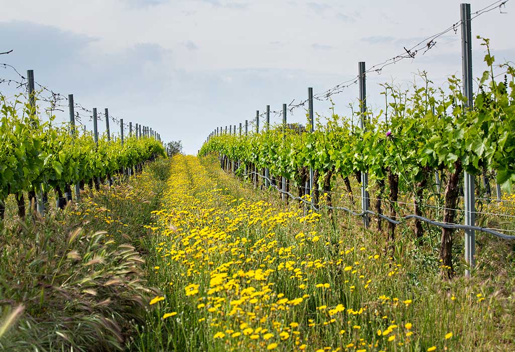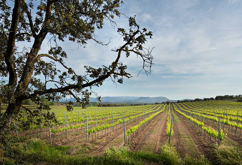 Los viñedos se encuentran plantados en suelos muy heterogéneos, poco profundos y pobres en materia orgánica, con textura franco limosa, a una altitud de 310 m y con clima mediterráneo de transición a continental. Se cultivan una amplia gama de variedades: Tempranillo, Garnacha tinta, Syrah, Merlot, Chardonnay, Pinot Noir, Cabernet sauvignon y Sauvignon blanc; también se experimenta con nuevas variedades y clones, que darán vida a los futuros vinos.