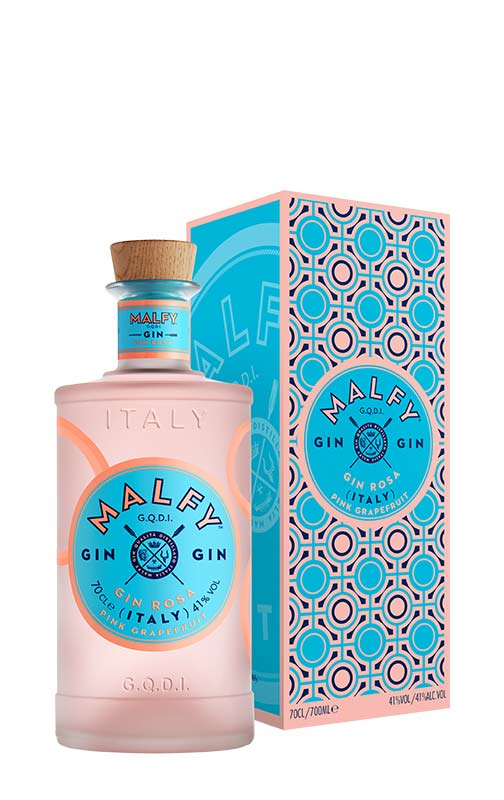 Malfy Gin Rosa está elaborada con enebro italiano, pomelo rosa de Sicilia, ruibarbo italiano y otros cinco botánicos. Los pomelos son madurados al sol y se cultivan en la costa mediterránea, donde las montañas se encuentran frente al mar. En boca se aprecia el pomelo fresco y jugoso, con un rico y largo final de enebro.