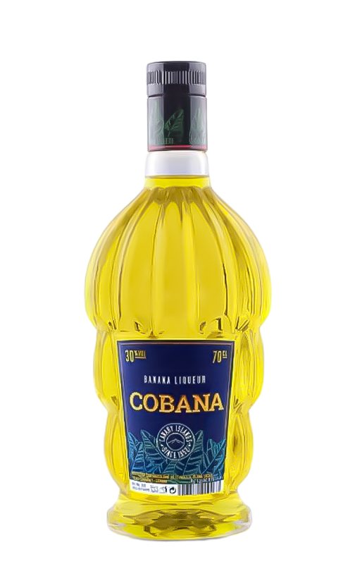 El plátano, la fruta reina canaria, es el gran protagonista de este Banana Liqueur Cobana, bebida licorosa obtenida tras su maceración en aguardiente para lograr un suerte de mistela. El resultado es una bebida que se recomienda degustar muy fría de intenso color amarillo y profundo aroma a plátanos maduro en consonancia con una boca dulce y agradable.