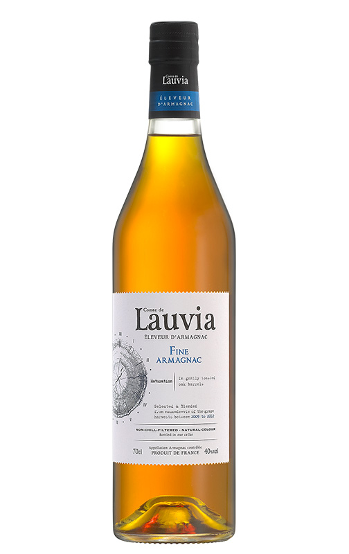 Comte de Lauvia Fine Armagnac es un aguardiente fruto de una corta pero intensa interacción con el roble, un proceso de crianza que finaliza en barricas viejas que aportan sutileza y complejidad. Elaborado a partir de las variedades Ugni blanc, Baco blanc y Folle Blanche, es fresco y vivo, con aroma atractivo y complejo, toques de vainilla, limón y flor de lima. En boca es flexible y afrutado, con un final delicado y delicioso.