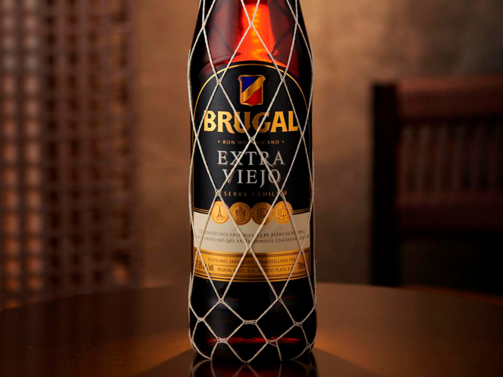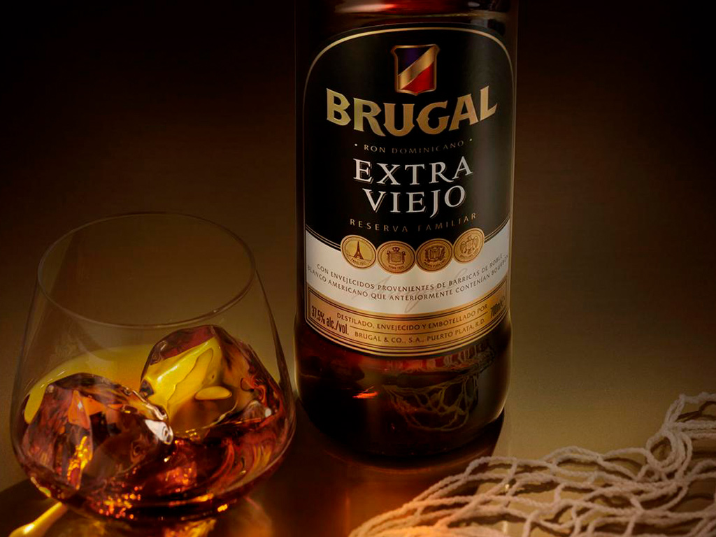 - Vierte el Brugal Ron Extra Viejo.