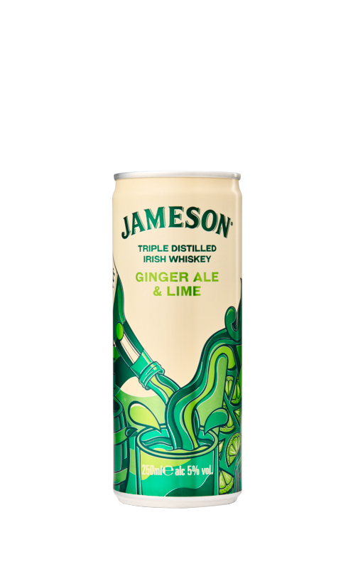 Jameson Ginger & Lime es un refresco con un 5% de graduación alcohólica que replica el trago insignia con Jameson, Jameson con ginger ale y lima. Listo para consumir. Pruébalo y siente el poder de tres elementos que combinados dejan lo mejor de cada uno, el sabor a whisky con el frescor y sequedad que aportan la lima y el ginger ale. El ginger ale complementa el suave sabor de Jameson y la lima lo refresca. Servir muy frío.