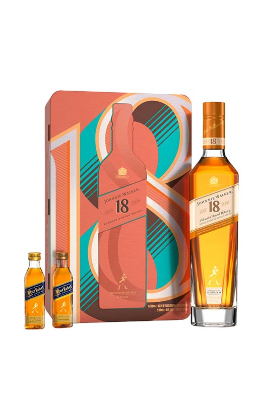 Johnnie Walker 18 YO + 2x5cl Miniatur set de regalo con estuche de metal
