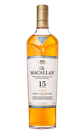 The Macallan Triple Cask Matured 15 Years Old forma parte de nuestra gama Triple Cask Matured, una serie de whiskys de malta elaborados en una combinación de tres tipos de barricas de roble europeo y americano que contuvieron jereces, y barriles de roble americano que guardaron bourbon. Una combinación perfecta que nos deja un Single Malt único con sabores vibrantes de naranja y chocolate. Un The Macallan con un estilo más ligero y un carácter más complejo. Este whisky se denominaba anteriormente Fine Oak 15 Years Old, y ofrece el mismo carácter extraordinariamente suave y delicado,