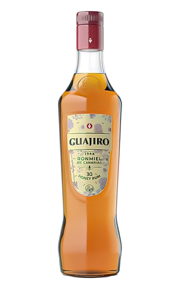 Ronmiel Guajiro representa a la perfección la verdadera esencia del famoso licor canario. Elaborado con miel y rones seleccionados 100% naturales, destaca por la intensidad de sus aromas a caña y flores, con ligeros matices de fruta escarchada y recuerdos balsámicos. En suma, un trago dulce y sedoso, de final ligeramente amargo que le dota de personalidad. Aquí presentado en formato de 1 litro.