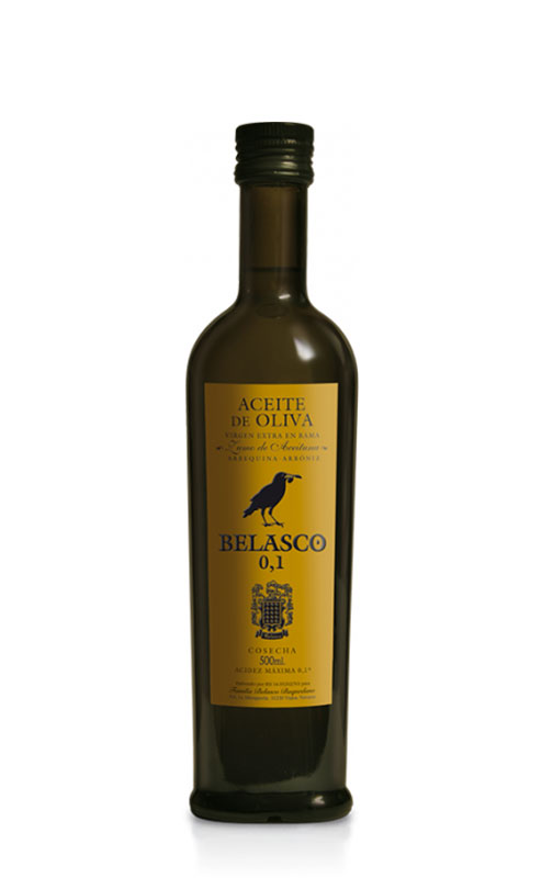 Las aceitunas con las que se elabora este aceite en rama (sin filtrar) proceden de los olivos milenarios de la familia Belasco, ubicados entre las localidades de Viana y Torres del Río. El resultado es un aceite muy afrutado, de un color verde muy intenso y que resulta perfecto para degustar crudo, con ensaladas, pan o verduras.