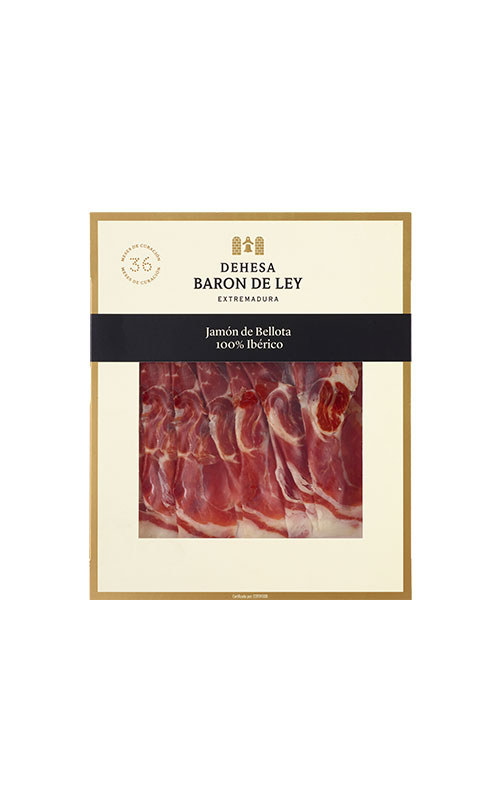 Jamón de Bellota 100% Ibérico Dehesa Baron de Ley loncheado a mano 80 g