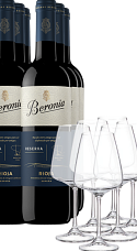 No te pierdas este pack diseñado para los amantes de los vinos de Rioja. Te ofrecemos seis botellas de Beronia Reserva 2018 y 6 copas de cristal Corvus y con serigrafía en la base de regalo. Incluye también los portes gratis.