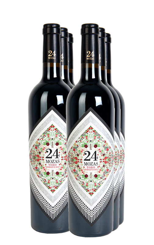 24 Mozas es un vino muy ligado a la cultura y al folcore toresano como muestra su etiqueta ilustrado con un manto de mantila floreado que forma parte de la indumentaria feminina típica de la zona. Su nombre también procede de una estrofa tradicional de Toro llamada "Tío Babú", en la que se relata la historia de um matrimonio en el que no "iban 24 mozas, iban 25 porque iba la novia". Aunque sea un tinto joven perfectamente apto para disfrutar desde el momento de la compra, tiene también un buen potencial de guarda, y en cata se destaca por marcados matices aromáticos especiados y de fruta negra madura.
