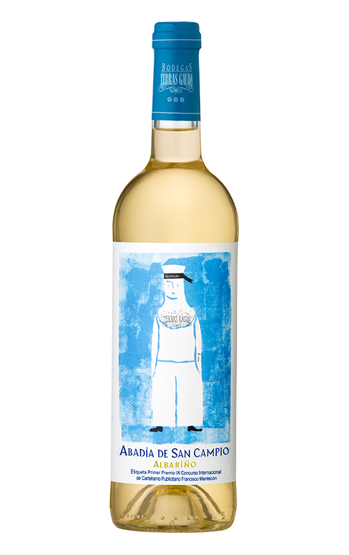 Abadía de San Campio es todo mar y frescura, tanto por dentro como por fuera. Este monovarietal de Albariño es uno de los vinos de su categoría más premiados. Ganó en añadas anteriores el "Gran Albariño de Oro" del I Concurso de Albariños del Mundo celebrado en Inglaterra y también se hizo con el primer premio en la Fiesta anual del Abariño celebrada en Cambados (Pontevedra). En definitiva, un vino amable, vivo, fresco y apetecible con una presentación de lo más original.