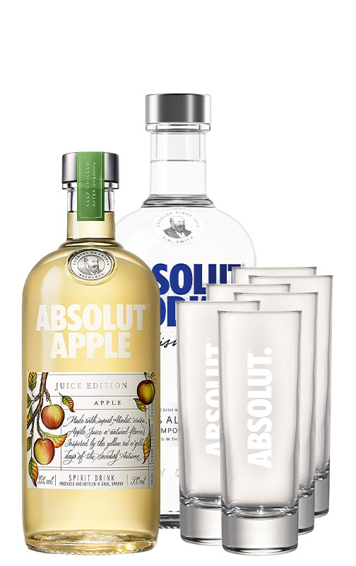 Absolut Vodka es un vodka sueco elaborado exclusivamente con ingredientes naturales y, a diferencia de otros vodkas, no contiene azúcar añadida. Tiene un sabor rico, con cuerpo y complejo, pero suave y con un carácter distintivo de grano, seguido por un toque de fruta seca. Absolut Apple Juice Edition, elaborado a partir de vodka y zumo de manzana, está inspirado en los colores del otoño sueco. Es muy fresco, tanto en aroma como en sabor, con un toque a manzana madura, es suave y con un dulzor muy bien equilibrado.