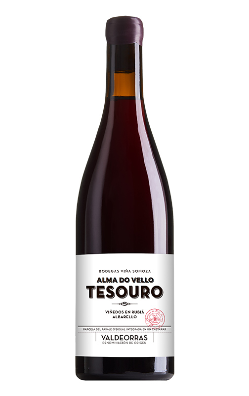 El tesouro de Viña Somoza es el pequeño viñedo con el que se elabora este tinto, ubicado a los pies de un castañar antiguo. Protagonizado íntegramente por la uva Albarello o Brancellao, poco habitual en esta zona de Valdeorras, y con 14 meses de crianza, se expresa muy aromático, con notas de fruta roja, herbáceas y florales y un gusto ágil y elegante.
