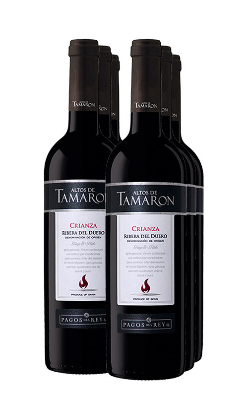 Altos de Tamarón Crianza está elaborado a base de uvas Tempranillo seleccionadas de viñedos de 20 años de los alrededores de Olmedillo de Roa (Burgos). Es un vino en el que predominan los aromas de frutos rojos negros, cacao, tabaco y especias. En boca es unutoso y envolvente.