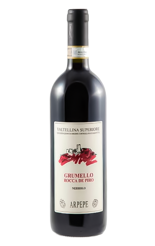Vino que rinde homenaje al castillo Grumello, ubicado en la zona de Valtellina, la misma en la que se levanta la bodega Ar.Pe.Pe. Esta fortaleza, que perteneció a la familia De Piro y que tenía un uso tanto defensivo como residencial, se conoce como el castillo gemelo porque cuenta con dos partes iguales unidas por una pared. En cuanto a la composición del vino, se elabora con uvas procedentes de los dos viñedos que Ar.Pe.Pe. tiene en esta subzona de la DOC Valtellina Superiore, ambos orientados al sur, beneficiéndose así de numerosas horas de luz y desarrollando una piel más gruesa. Ya en bodega el vino tiene una maceración de más de 100 días en tinas de madera y una crianza de 15 meses tanto en madera como en otros materiales como el cemento y el vidrio. Es un tinto complejo, con cuerpo y con unos taninos sabrosos.