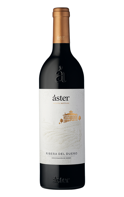 Áster es el vino genérico de la casa. Procede de un terroir único de 87 hectáreas que rodea la bodega y que está ubicado a casi 800 metros de altitud. El clima continental de esta zona burgalesa favorece mayores concentraciones de taninos, estructura y color en las uvas. Monovarietal de Tinta del país que impresiona por su fortaleza, suave acidez y equilibrio.