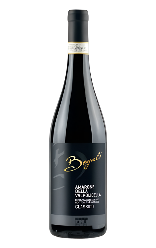 Begali Amarone della Valpolicella Classico es un tinto clásico de prestigio que representa la tradición de la región de la Valpolicella. Se elabora con las variedades clásicas de la zona (Corvina, Rondinella y Corvinone), que se secan y posteriormente se vinifican, teniendo una crianza de tres años en barricas de madera. Se trata de un vino con aromas licorosos y un paso por boca maduro, corpulento y equilibrado. Está totalmente avalado por la crítica, como reflejan sus puntuaciones.