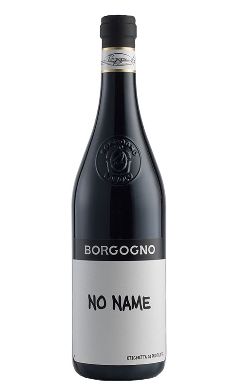 Borgogno No Name es un vino sin etiqueta y contestario que nació como protesta ante "la regulación y excesiva burocracia de la D.O.C.G. Barolo", según explica la propia bodega. Elaborado a partir de uvas Nebbiolo, como si de un vino clásico de Barolo se tratara, no pudo lograr dicha categoría, y sí la de Langhe Nebbiolo D.O.C. La casa en señal de disconformidad decidió llamarlo "Sin Nombre". Fue tal el éxito de este grito líquido de rebeldía y crítica contra la rigidez imperante que perdura hasta la actualidad. Intensidad y pura armonía en un tinto ya mítico.