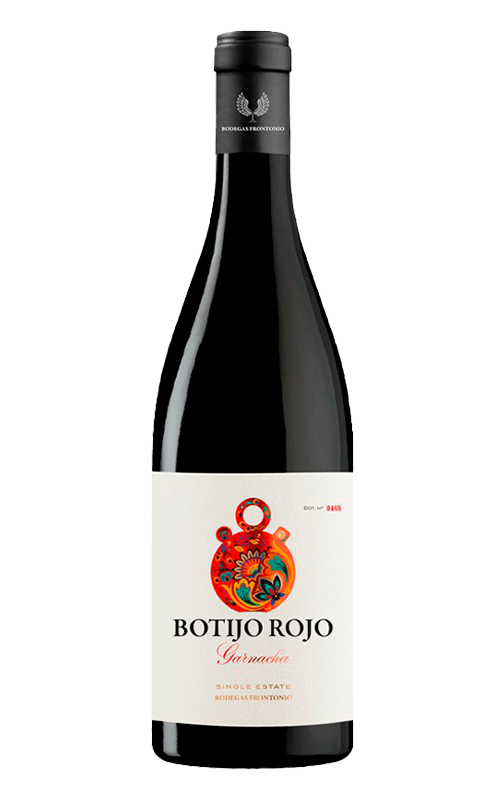 Botijo Rojo es la Garnacha que representa la gama de entrada de Frontonio. Las viñas crecen en Valdejalón donde reciben muchas horas de sol, resisten a los fríos inviernos y al azote del Cierzo entregando un puñado de racimos en cada cepa que concentran los grandes aromas y sabores de la variedad: frutos rojos y negros. Un tinto fino y firme con notas especiadas que le otorgan personalidad única.