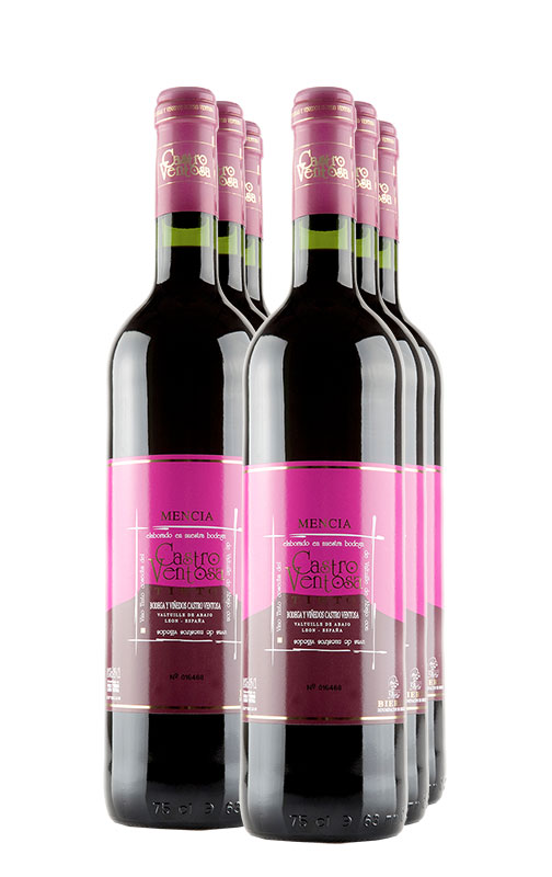 Castro Ventosa, con su llamativa etiqueta rosa, es un tinto joven elaborado exclusivamente con Mencía procedente mayoritariamente del municipio de Valtuille. Se trata de un vino que se vende mayoritariamente en la comarca del Bierzo con mucho éxito, y que muestra fielmente las virtudes tanto de la variedad como de la zona. Vino jugoso, sabroso y fácil de beber, con un toque herbáceo y balsámico final.