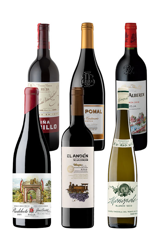 El Barrio de la Estación es la meca a la que acudimos todos los amantes del vino, tanto dentro como fuera de España. Se trata de un lugar sagrado, un templo construído en torno a la estación de ferrocarril de Haro cuyos pilares son una concentración de bodegas centenarias más emblemáticas de Rioja, aquellas que hicieron del vino y de la región aquello que es hoy. Con este pack disfrutaremos de una muestra de algunas de ellas: Muga, Gómez Cruzado, CVNE, Bodegas Bilbaínas, La Rioja Alta S.A. y López de Heredia.