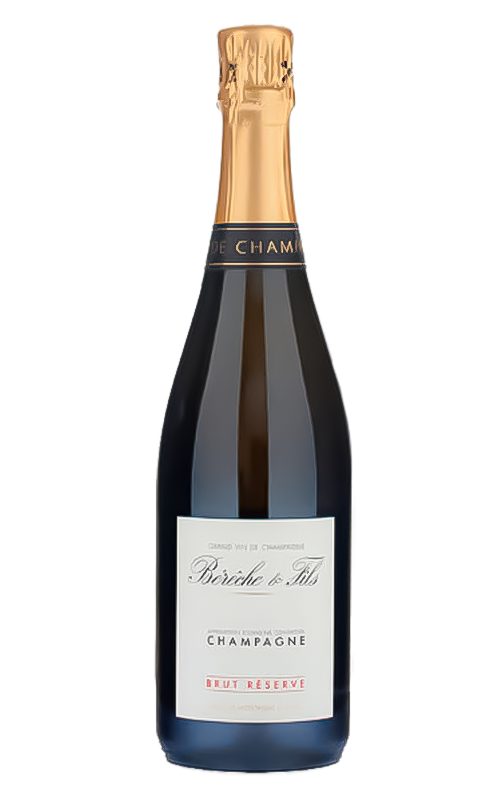 Champagne Bérêche & Fils Brut Réserve plasma la complejidad de sus terruños privilegiados de origen: la riqueza de los suelos del Valle del Marne y la finura calcárea característica de la Montaña de Reims. Pinot noir, Chardonnay y Meunier y conforman un coupage vinoso, refinado, con aromas a galleta, consistente textura, burbuja cremosa y final delicadamente salino, sabroso y persistente.