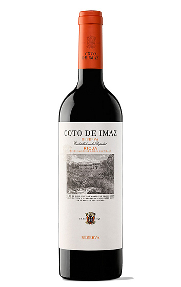 El Reserva de la gama Coto de Imaz es uno de los vinos más reconocidos de El Coto de Rioja, una de las grandes bodegas de la D.O. Un vino complejo y equilibrado gracias, en parte, a su larga crianza (18 meses en barrica y 18 meses extra en botella). En nariz predominan las notas de fruta madura y cacao fino, y en boca es un tinto potente, con taninos maduros y buena acidez.