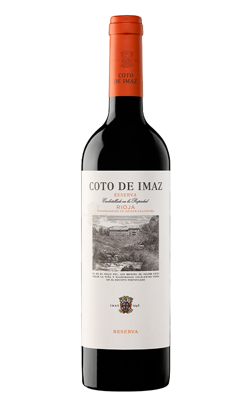 El Reserva de la gama Coto de Imaz es uno de los vinos más reconocidos de El Coto de Rioja, una de las grandes bodegas de la D.O. Un vino complejo y equilibrado gracias, en parte, a su larga crianza (18 meses en barrica y 18 meses extra en botella). En nariz predominan las notas de fruta madura y cacao fino, y en boca es un tinto potente, con taninos maduros y buena acidez.