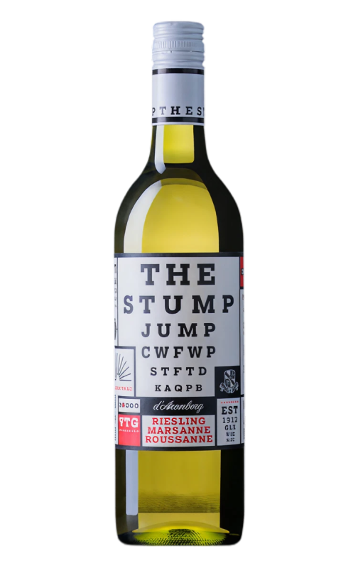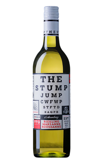 El stump jump es un tipo de arado australiano que permite saltar sobre tocones, raíces y rocas sin romperse. Cuentan desde la bodega D'Arenberg que su inventor, allá por el siglo XIX, tenía problemas de vista y necesitaba revisársela regularmente para poder seguir utilizando su creación. Es por eso que el diseño de la etiqueta de D'Arenberg The Stump Jump White Blend se inspira en las tablas de letras para graduar la visión que emplean los optometristas. La original etiqueta es la antesala del no menos llamativo coupage de Riesling, Marsanne, Sauvignon blanc y Roussanne que encontramos en el interior, de la botella. Una delicia de aromas frutales, desde piña, maracuyá o guayaba hasta melón y crujiente frescura.