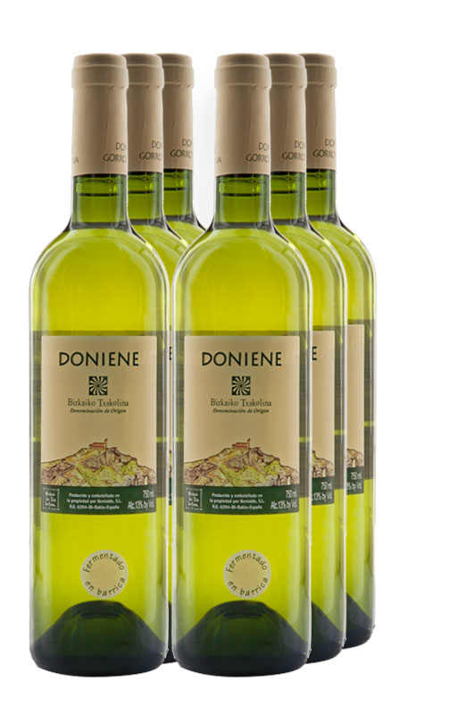 Doniene Fermentado en Barrica solo se elabora en años de buena maduración. Este txakoli puede presumir de haber obtenido la mejor puntuación de la historia para un vino elaborado en la vertiente cantábrica del País Vasco, una valoración que no pasó desapercibida porque fue realizada por la Guía Peñín. Ya la añada 2006 marcó un hito al alcanzar por primera vez los 90 puntos para un txakoli, y es que con el paso de los años, va ganando enteros en definición.