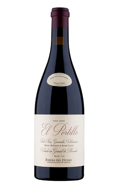 El Portillo es un pequeño viñedo de poco menos de hectárea y media localizado en la parte alta del paraje Las Navas, en Gumiel de Mercado. Lo plantó en 1936 la familia Calvo, y hoy son los hermanos Rodrigo y Asier quienes recogen los frutos de su herencia familiar. De este viñedo singular elaboran este tinto, un ensamblaje de Tinto fino, Garnacha y Valenciano, como se le llama a la Bobal en estas tierras. Un vino complejo y especiado, rico en matices y con un carácter afrutado muy seductor. Un tributo a la cultura vitivinícola de Gumiel de Mercado y a su familia.