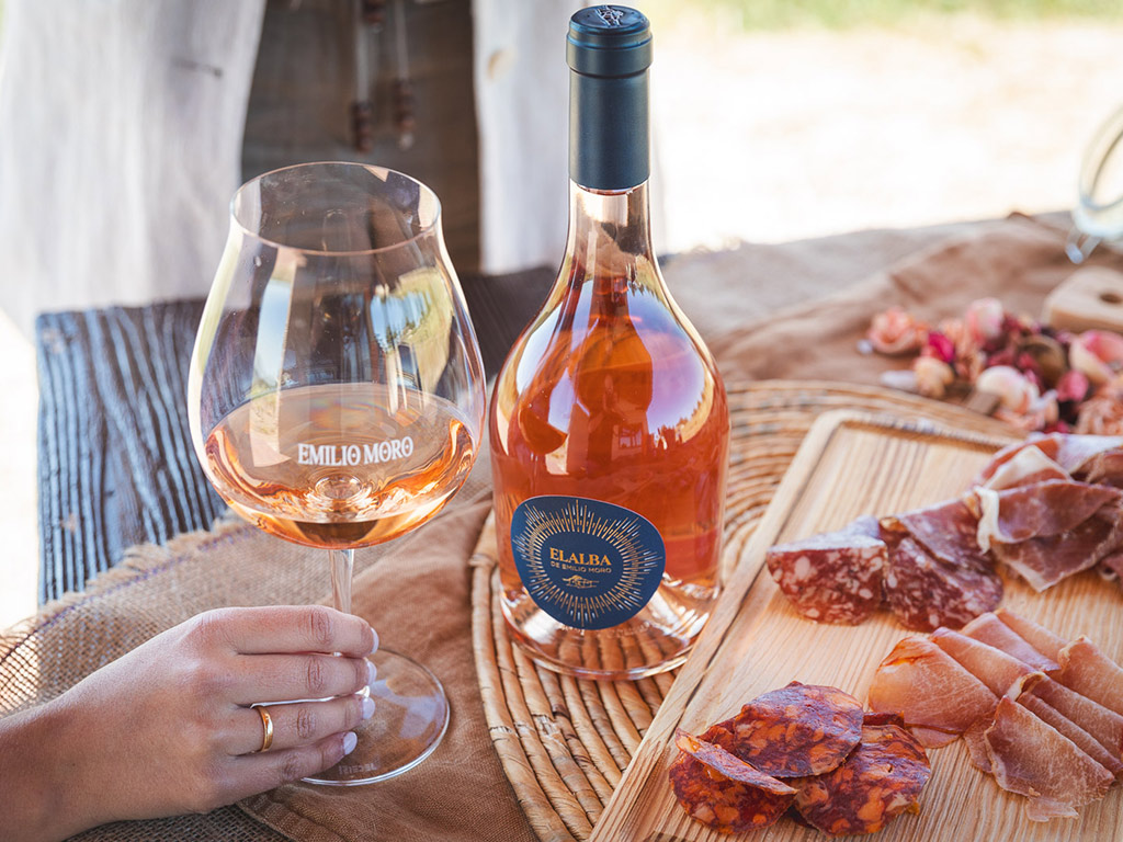 Elalba es el primer rosado de Emilio Moro en tierras ribereñas. Un nuevo capítulo en la historia de esta casa que ve ahora su luminosa añada 2024. Precisamente es esta luz la que inspira su nombre y su creación: el momento del alba. Todo un alegato al amanecer, donde el sol simboliza el inicio del día y de la vida. Elaborado con Tempranillo y Albillo mayor, se vinifican a la vez dando como resultado una creación fresca, delicada y con mucho potencial.