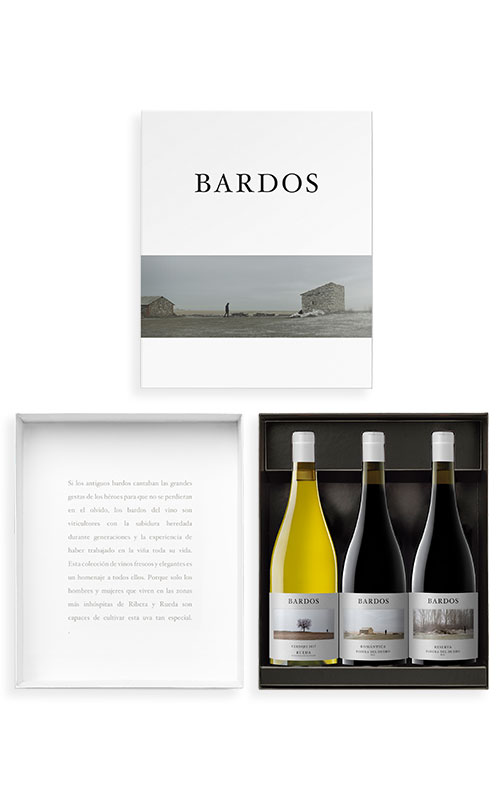 Bardos nos presenta este estuche con sus 3 referencias más conocidas: su Verdejo, su Reserva y su Crianza. Un estuche perfecto para descubrir esta casa y sus vinos, que ve la luz como un homenaje a todos aquellos viticultores que supieron valorar las uvas y viñedos de regiones como Ribera y Rueda.