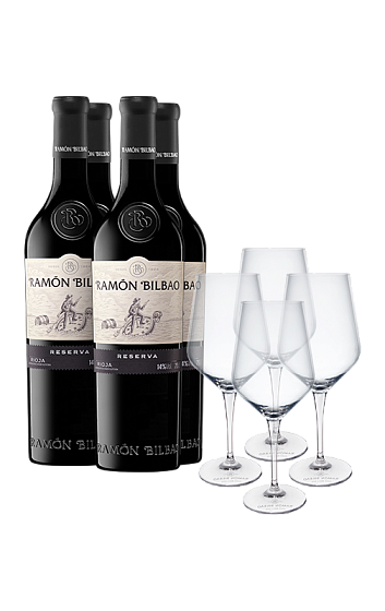 Un clásico riojano renovado, criado en barricas de roble americano, versátil, frutal, equilibrado e insustituible en la mesa de cualquier aficionado al vino tradicional de Rioja. Ahora puedes disfrutarlo en un elegante estuche de cuatro botellas, acompañado de cuatro copas serigrafiadas de regalo, pensado para que tus brindis sean siempre un éxito.