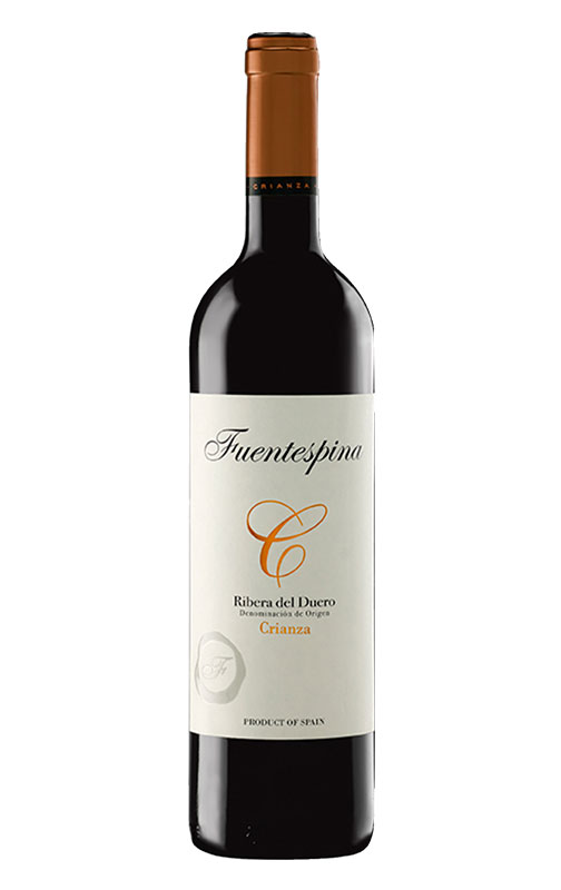 Por las características de los suelos y del clima, la Tempranillo en la D.O. Ribera del Duero posee una concentración tánica excepcional para elaborar vinos de crianza. Este Fuentespina es un buen exponente de su categoría. Un tinto con 12 meses de crianza en roble americano que destaca por su expresiva nariz de fruta roja y negra, vainilla y torrefactos y una boca potente y envolvente.