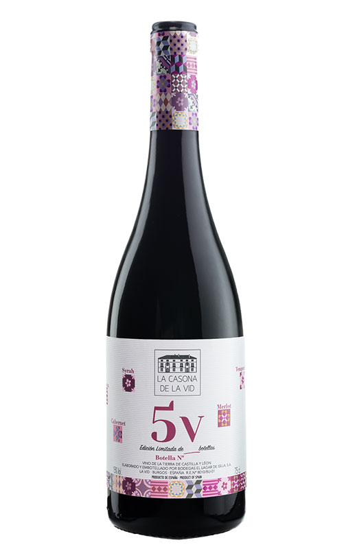 La Casona de la Vid 5V es un vino elaborado a partir de las variedades Syrah, Cabernet sauvignon, Tempranillo, Garnacha y Merlot (5V). Tinto verdaderamente complejo que ofrece una considerable frescura conseguida por la mezcla de las variedades con las que está elaborado. Bien estructurado y de taninos suaves.