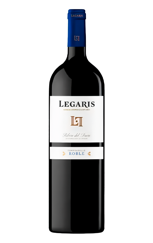 Legaris Roble es un vino que posee la máxima intensidad aromática y busca exaltar toda la tipicidad que ofrece la variedad Tinto fino. Elaborado a partir del fruto de parcelas propias y de proveedores controlados, despliega ligeras notas a vainilla y coco gracias a un breve paso por roble americano que, además, le aporta estructura al conjunto. En suma, se trata de un tinto joven, frutal, goloso y fácil de beber.En formato de 1,5 litros.