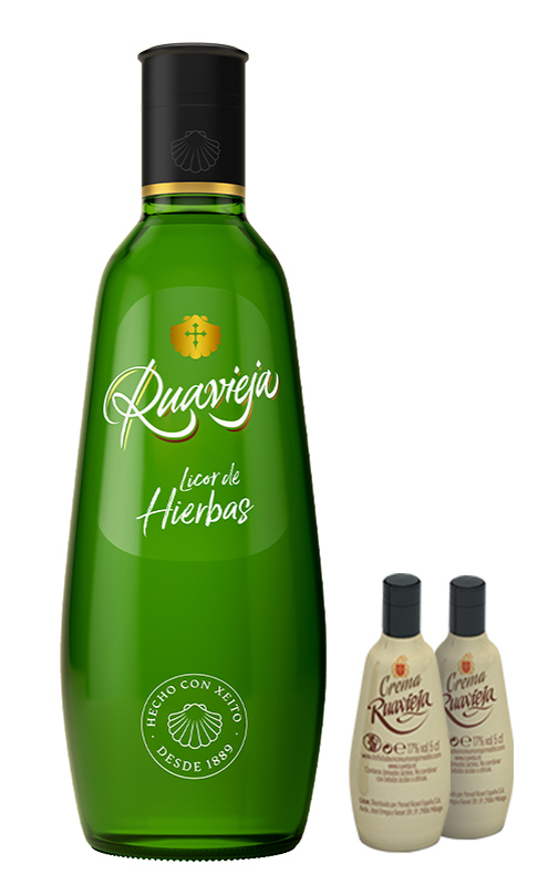 Licor de hierbas Ruavieja con 2 botellas de Crema Ruavieja Mini de regalo