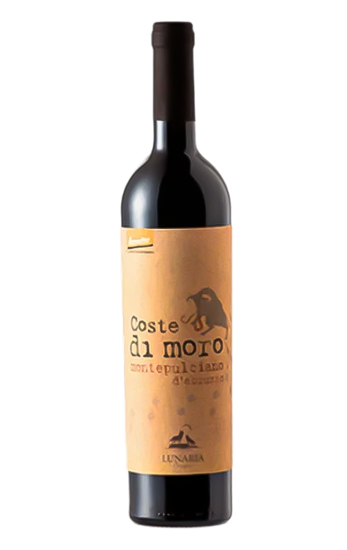 Ecológico y biodinámico, Lunaria Coste di Moro Montepulciano es un tinto en el que la variedad principal de la región de Abruzzo exhibe toda su pureza, gracias a su elaboración sin artificios en la únicamente se afinó en cemento y botella. Cálido, suave, intenso y pleno de fruta roja y negra con el típico final almendrado.