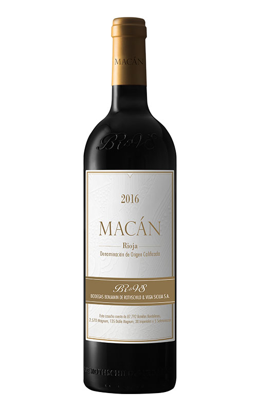 Macán es una mirada moderna y muy personal a los vinos de alta expresión y máxima calidad de la D.O. Ca. Rioja. Es una apuesta por la finura, la elegancia, la complejidad y la potencia, y constituye el estandarte de Bodegas Benjamin de Rothschild & Vega Sicilia, el proyecto iniciado por Tempos Vega Sicilia y la Compañía Vinícola Edmond de Rothschild en 2004. 2009 fue la primera añada lanzada al mercado y este Macán 2016 corrobora el trabajo realizado durante estos años. El conocimiento, el esfuerzo, la paciencia y el espíritu de mejora contribuyen al crecimiento de un proyecto que actualmente se asienta sobre un patrimonio vitícola de 98 hectáreas de viñedo de alta calidad y unas modernas instalaciones de elaboración que fusionan tecnología, tradición e innovación..Disponible aquí en formato magnum.