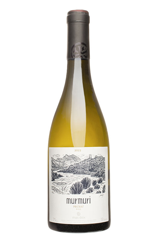 The very young white 2024 Murmuri was produced with 90% Garnacha Blanca and 10% Macabeo from Poboleda and La Morera de Montsant. It was pressed in a pneumatic press, then the juice fermented in stainless steel with neutral yeasts and without malolactic. Then it was kept with lees and had weekly bâtonnage for three months. It's far too young and undeveloped, with notes of balsam and a medicinal twist. It has a tender palate with some balsamic flavors and integrated acidity, more expressive than the nose. It has contained ripeness and 13% alcohol and comes through as fresh and balanced. Wait a bit. 2,956 bottles were produced in an extremely low-yielding year. It was bottled in February 2025.