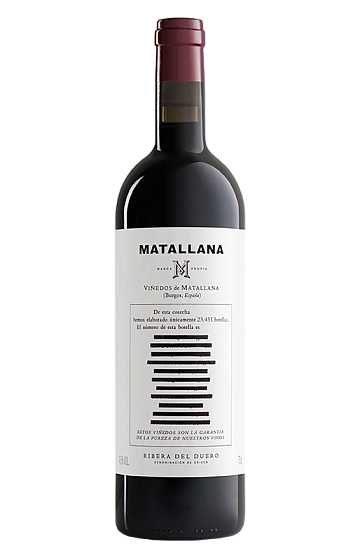 Matallana es la expresión del paisaje austero y continental de la meseta castellana desierta, de los valles y terrazas de la Ribera de Duero. Este vino es el fruto de once parcelas de cinco pueblos y de una gran diversidad de suelos completamente diferentes. La variedad Tinto fino es el denominador común, con pequeños porcentajes de Navarro, Valenciano y Albillo mayor. Un vino de alta expresión que cuenta con altísimas puntuaciones. Una producción muy limitada con botellas numeradas.