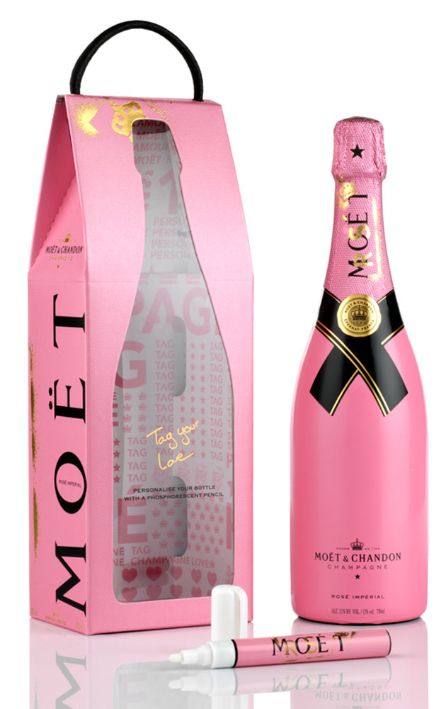 El Champagne más glamuroso de la Maison, fruto de una sabia combinación de vinos blancos y tintos. Poderoso, generoso, intenso y elegante, el Rosé de Moët es un Champagne absoluto con poder de seducción extraordinario. Viene en un estuche especial San Valentín con bolígrafo para que puedas personalizar la botella. Edición limitada con muy pocas unidades en España.