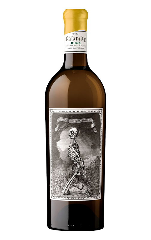 The spicy and showy 2023 Kalamity White was produced with the white varieties—Viura, Calagraño, Torrontés, Malvasía Riojana, Maturana Blanca and Garnacha Blanca—that are interplanted with the reds used to produce the original Kalamity red. It has contained ripeness, 13.5% alcohol and a pH of 3.4 with a bone dry and chalky finish. This is still too young and oaky, marked by the élevage in 600-liter oak barrels for 10 months in a Burgundian way, leesy and smoky, with white fruit, pollen and spicy notes. It has a medium-bodied palate with pristine flavors, vibrant and tasty. One to keep. 3,100 bottles produced. It was bottled in September 2024.