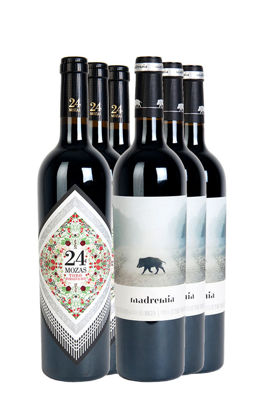 Este pack está especialmente pensado para que te lleves a casa la mejor relación calidad-precio en Toro. Divina Proporción nos entrega dos tintos que triunfan donde quiera que vayan. Madremía 2016, un tinto amable y moderno que ha llegado a estar en el Nº1 de Más Vendidos y 24 Mozas, joven toresano lleno de matices especiados y mucha fruta madura.