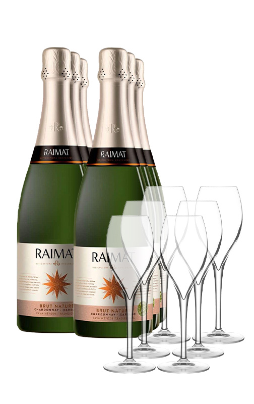 Pack Raimat Brut Nature (x6) con 6 copas de regalo