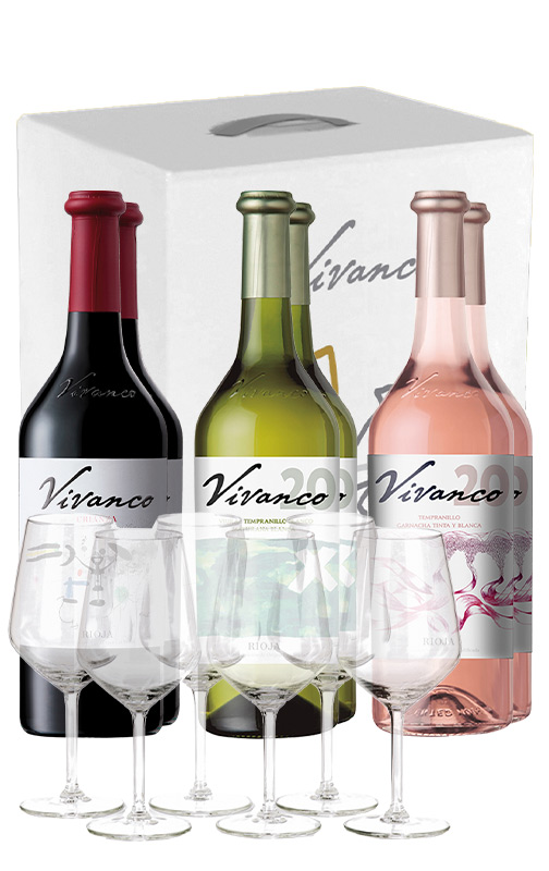 Vivanco presenta una selección de sus vinos icónicos en un solo pack para multiplicar el disfrute por seis. Dos botellas de su Crianza 2018, dos de su Blanco 2020 y dos del Rosado 2020 de la casa que llegarán allá donde quieras con seis copas de regalo. Una oportunidad de oro para disfrutar con lo mejor de este emblema riojano.