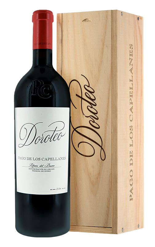 Pago de los Capellanes ha elegido el nombre de Doroteo, el del precursor de la bodega, para el vino con el que celebraron su 25º aniversario. Una producción muy limitada para un tinto elaborado con la uva reina de Ribera del Duero y con 36 meses de crianza en barrica. Mucha fruta negra en compota en nariz, con apuntes de especias dulces y balsámicos y un paso por boca redondo y voluptuoso.