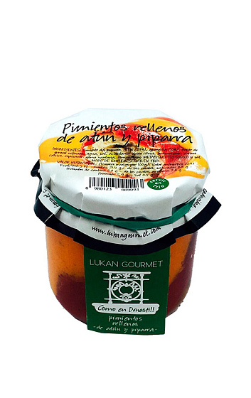 Ingredientes: Pimiento del piquillo, atún (27%), guindilla (10%), aceite de girasol refinado, agua, sal, acidulante: ácido cítrico, endurecedor: cloruro cálcico, espesante: goma xantana, conservador: metabisulfito sódico y sal.