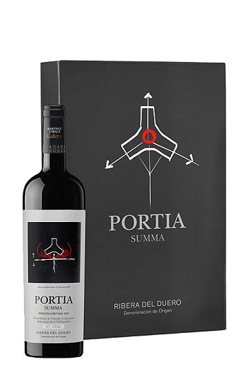 Portia Summa es un tinto alabado por críticos y aficionados, elaborado a partir de una cuidada selección de uvas Tempranillo procedentes de viñedos casi centenarios. Una de las creaciones más mimadas de la vanguardista bodega burgalesa. Aquí presentado en una elegante estuche negro con el logo distintivo de la casa
